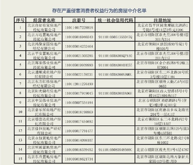 据了解,15家被通报的房屋中介包括: