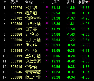 白酒行业对于政策向来极为敏感。一声令下A股市场白酒股就全面熄火。二级市场上,水井坊暴跌5.66%,酒鬼酒、沱牌舍得、山西汾酒纷纷大跌超4%,口子窖跌3.64%,五粮液、古井贡酒、伊力特等个股跌逾2%。