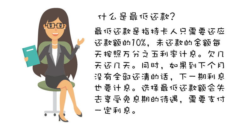 其次,最低还款,会有循环利息 所谓最低还款额一般是除去年费、利息等特殊项目后普通消费金额的10%,每家银行各不一样。在每期信用卡账单中会单独列示“最低还款额”。若按照账单中列示的最低还款额还款,剩余未还的部分属于正常信用余额,但是会失去享受免息期的待遇。偿还最低还款额可保持良好的信用记录。不过,持卡人也需要支付一定利息。若是按信用卡最低额的还款方式还款,每日须付万分之五的利息,并按月复利。这样,欠款时间越长,还款的压力也就越大。