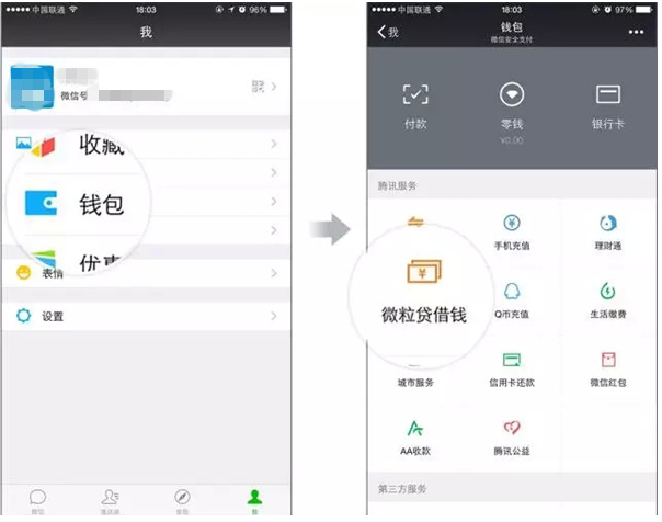 要看你有没有微信微粒贷,可以通过微信APP——【我】——【钱包】——看是否有【微信微粒贷】入口,展示步骤如下: