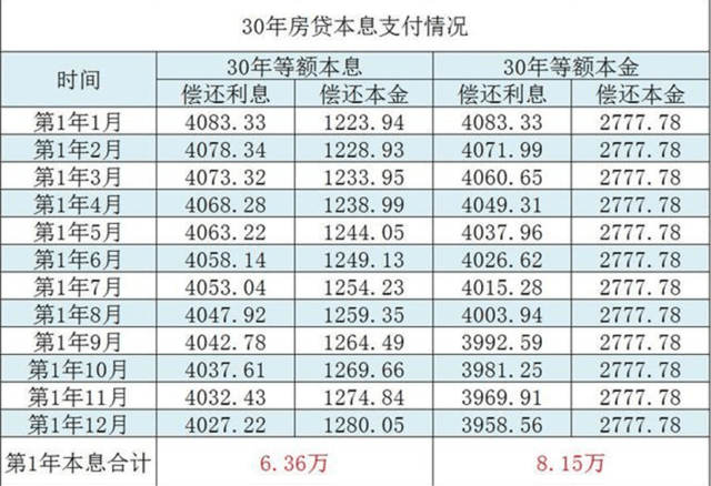 很多人看到了,肯定选等额本金,毕竟利息支付的少啊!但是实际上呢,可能也并不是这样,先看第一年。第一年换下来,实际上等额本金还的钱多。但是很多人会说,那之后等额本金还的越来越少,压力会越来越小啊!这点你说的点子上了,关键是,我们需要这样么?其实你是在浪费钱!