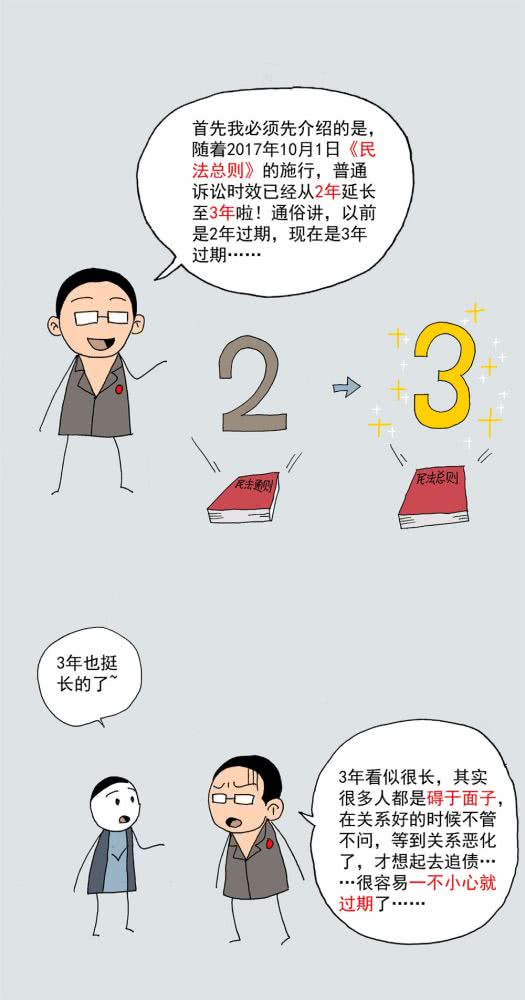当然了,我们得主动表示自己的慷慨,将还款日期延期,或同意对方分期付款,这样对方会更愿意拟还款计划,诉讼时效会因对方同意履行而中断,重新起算三年。