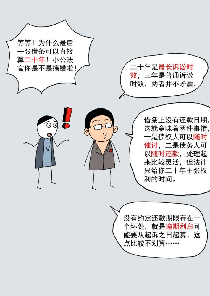 再比如说我们可以上前去谈,看他经济紧张,少收点利息(或以前的利息就算了),重新写一张利息有变动的借条,以前那张借条作废,这样对方肯写的可能性会高一点。