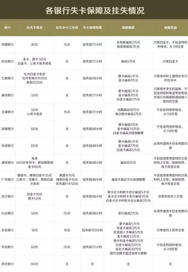信用卡丢失,各银行政策,有哪些保障?