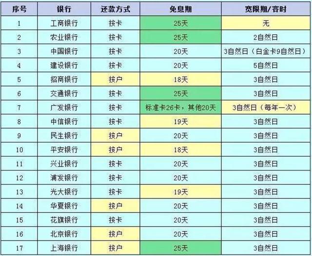 每一家银行的免息期有多长时间?