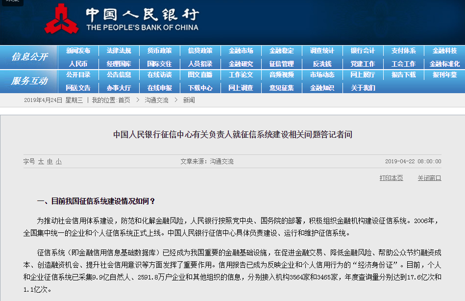 22日一大早,央行官网发布《中国人民银行征信中心有关负责人就征信系统建设相关问题答记者问》,专门就大家关心的征信系统建设问题进行了权威解答。