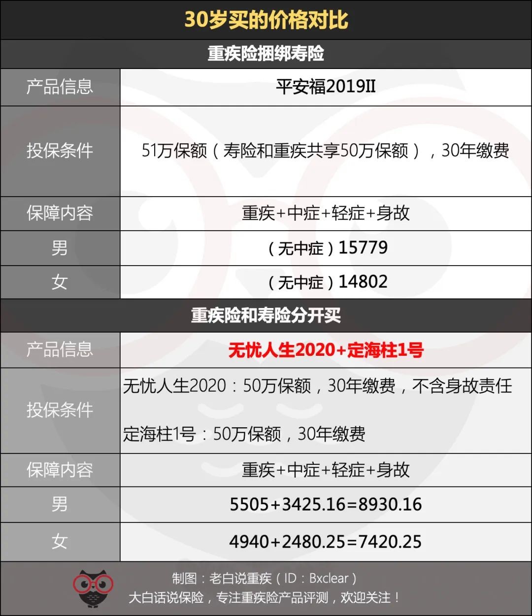 所以,如果对方不以实际需求(比如30万的重疾保额等)跟你谈价格,或者避开你的价格需求,那么他们家产品肯定很贵,不值得买。