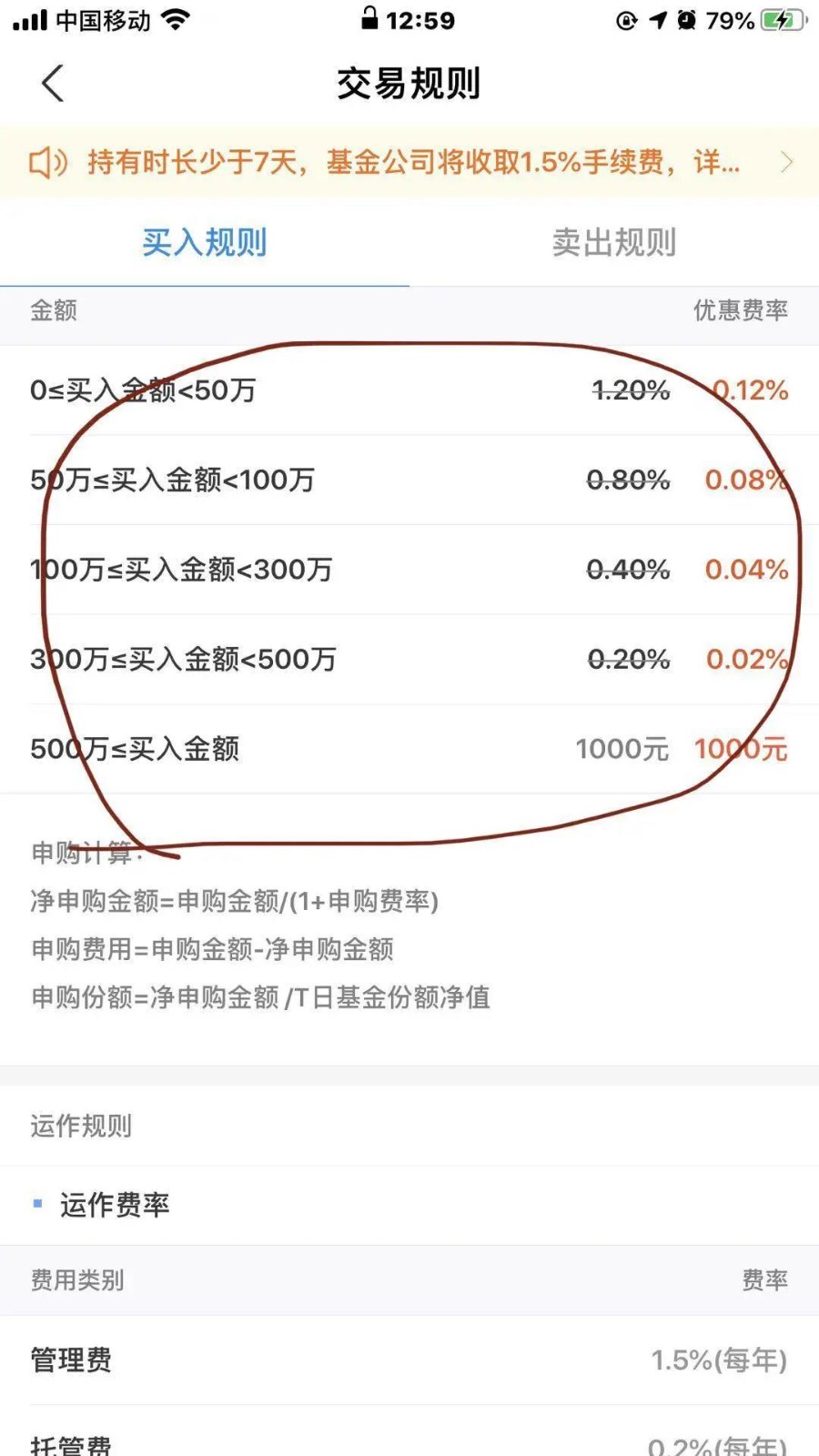 基金大致会有交易费率(买入卖出费率)和运作费率(管理费、托管费和销售服务费)两大类别。
