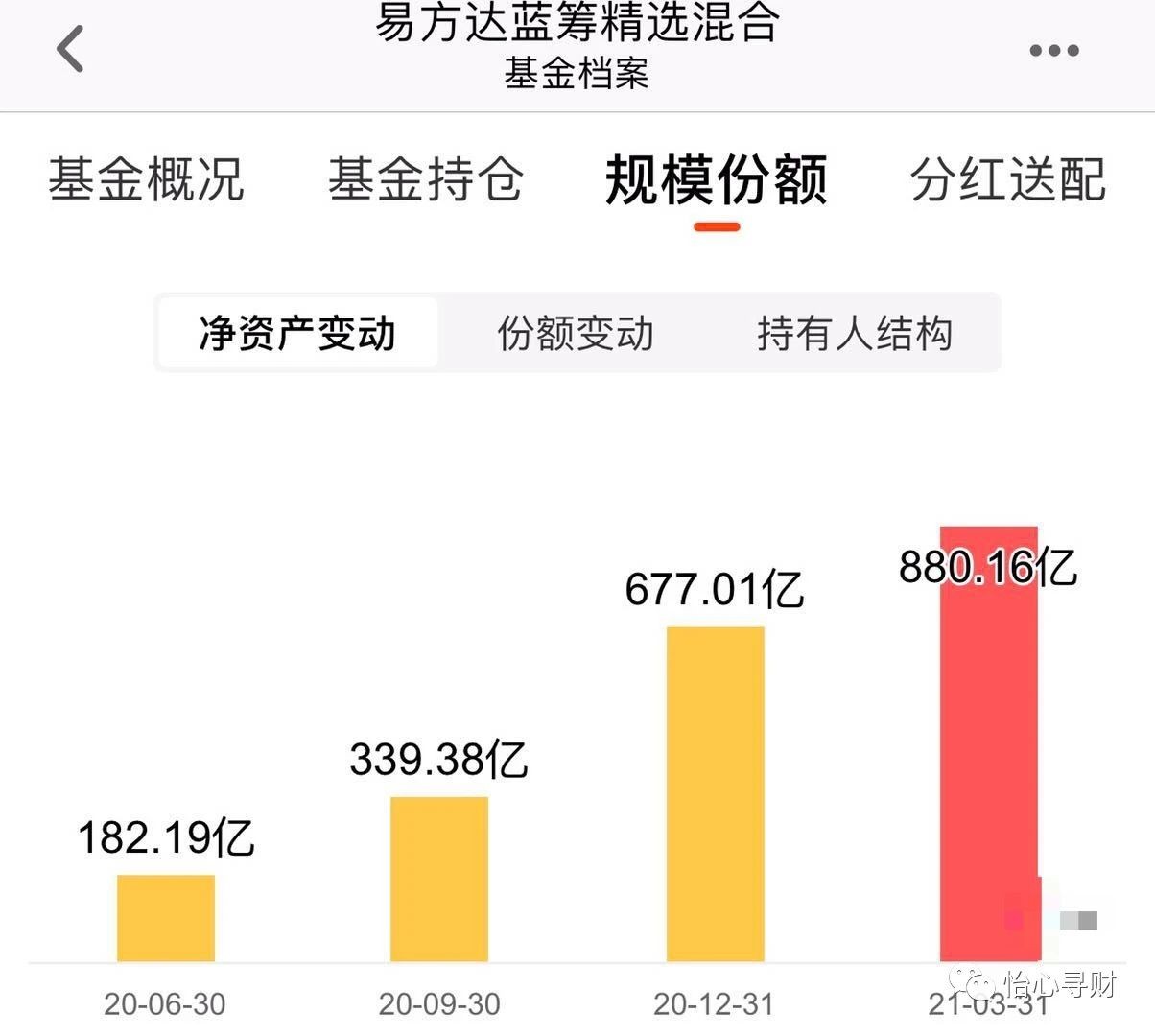 去年12月基金规模就达到了677亿,到了今年3月份基金规模更是达到了880亿。